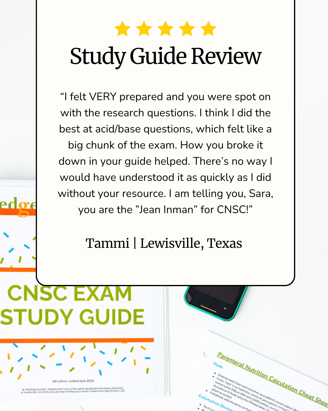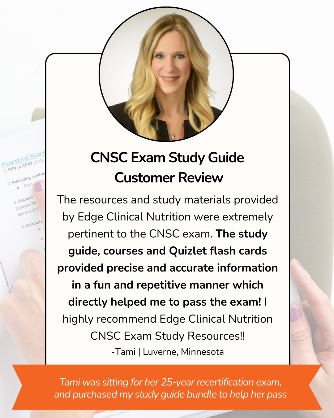 Developed by a seasoned nutrition support expert, educator, and 2-time CNSC. I provide real-time advice during your study journey. You can always reach out to ask questions!
