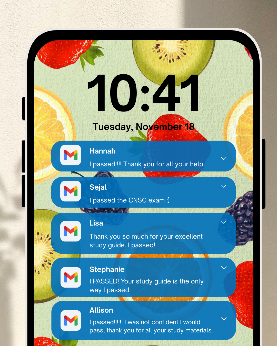 This comprehensive 100-page study guide and online course is expertly designed to help you pass the CNSC Exam with ease and confidence.