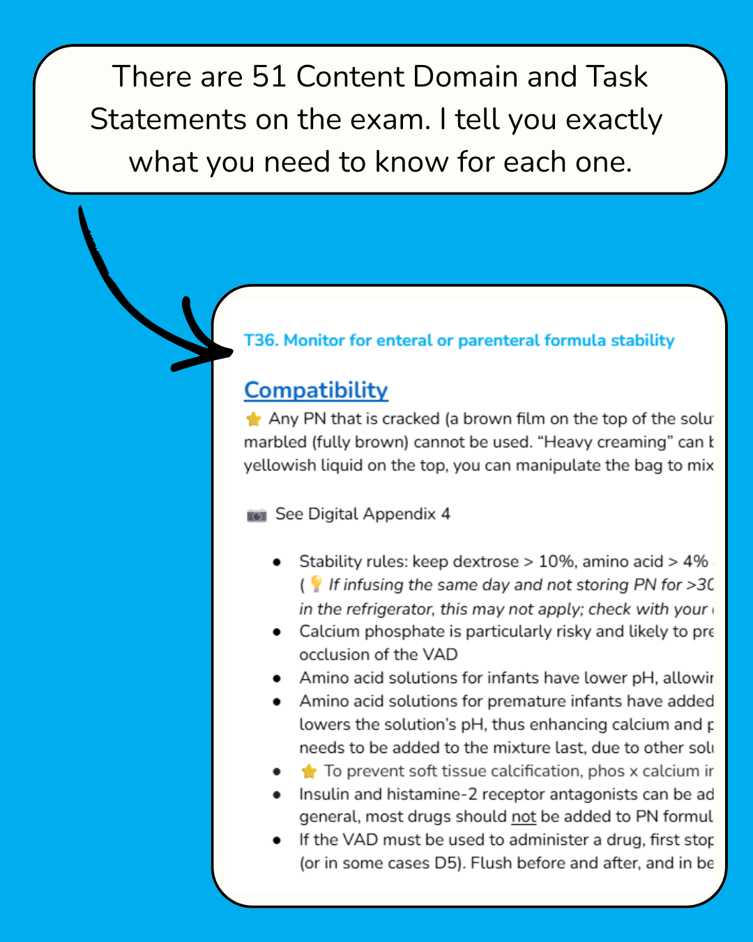Learn to calculate PN orders without relying on apps or spreadsheets (which you'll be expected to do on the exam) with my 15-page PN Calculation Cheat Sheet. I walk you through the PN dosing, math, stability, and calculations for 3-in-1 and 2-in-1 CPN and PPN in this comprehensive guide.