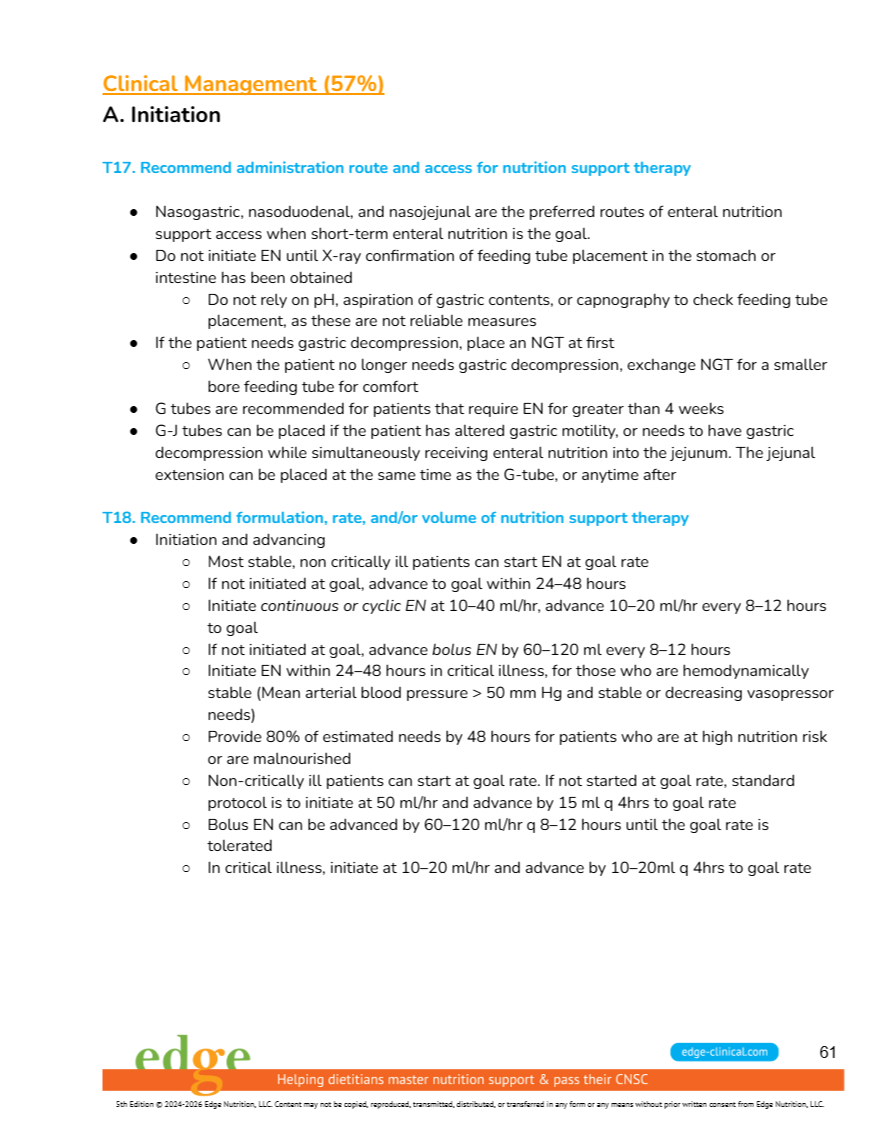 This comprehensive resource provides structured exam content with all 51 content categories on the exam. It follows the NBNSC content outline to a T, showing exactly what you need to know for each content area. No need to slog through the entire 847-page ASPEN Core Curriculum textbook!