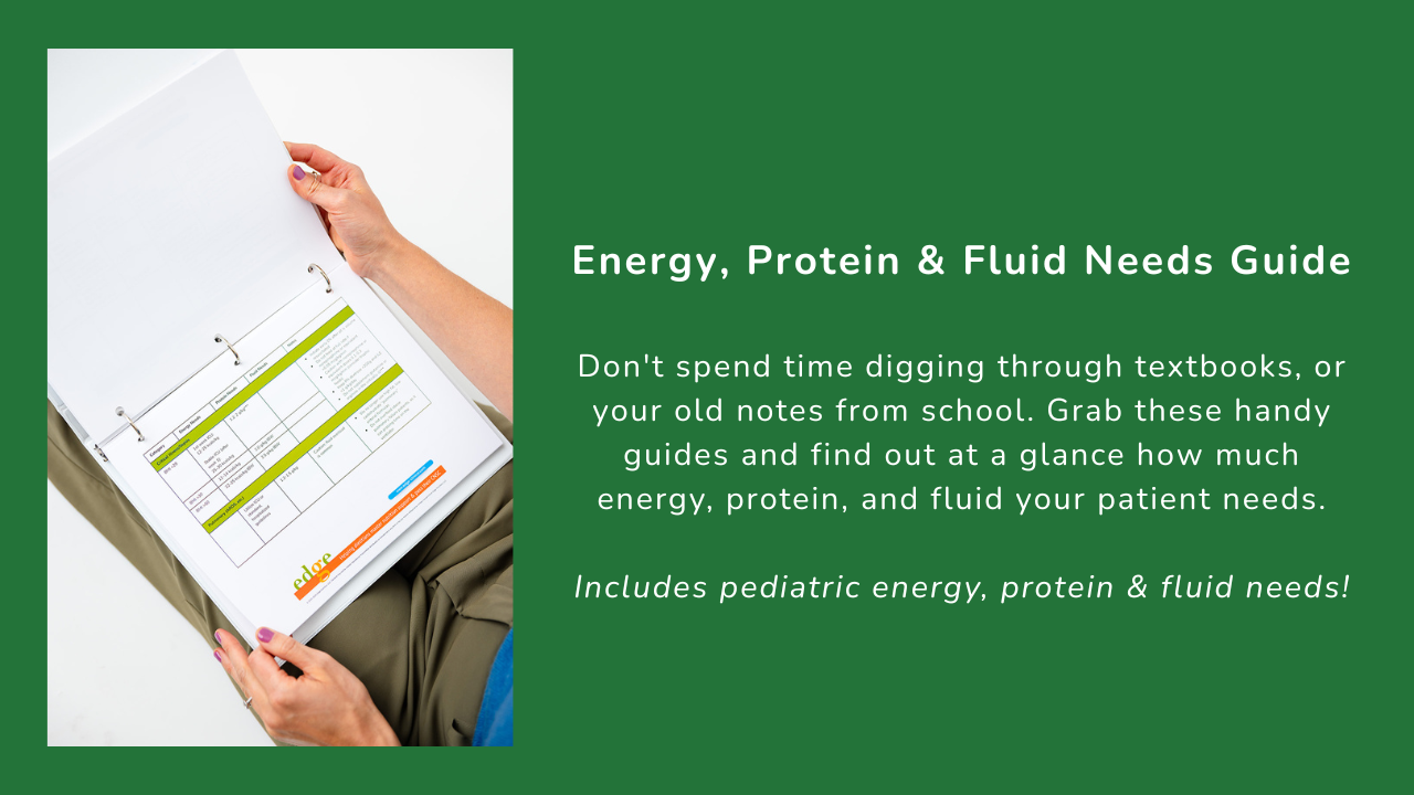 Don't spend time digging through textbooks, or your old notes from school. Grab these handy guides and find out at a glance how much energy, protein, and fluid your patient needs.