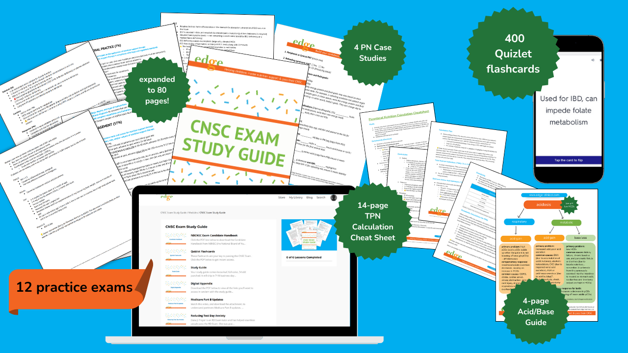 Prepare for the CNSC exam with Edge Clinical Nutrition's comprehensive study guide & course, designed for dietitians. This expert-created resource offers practice tests, clinical nutrition tips, and a clear path to passing the Certified Nutrition Support Clinician (CNSC) exam. Start your exam prep today!